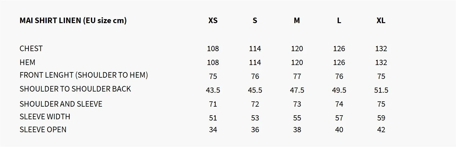 en/ Clean lines, effortless movement. Mai Shirt is crafted from lightweight 100% linen with an airy silhouette designed for warm days and timeless dressing.